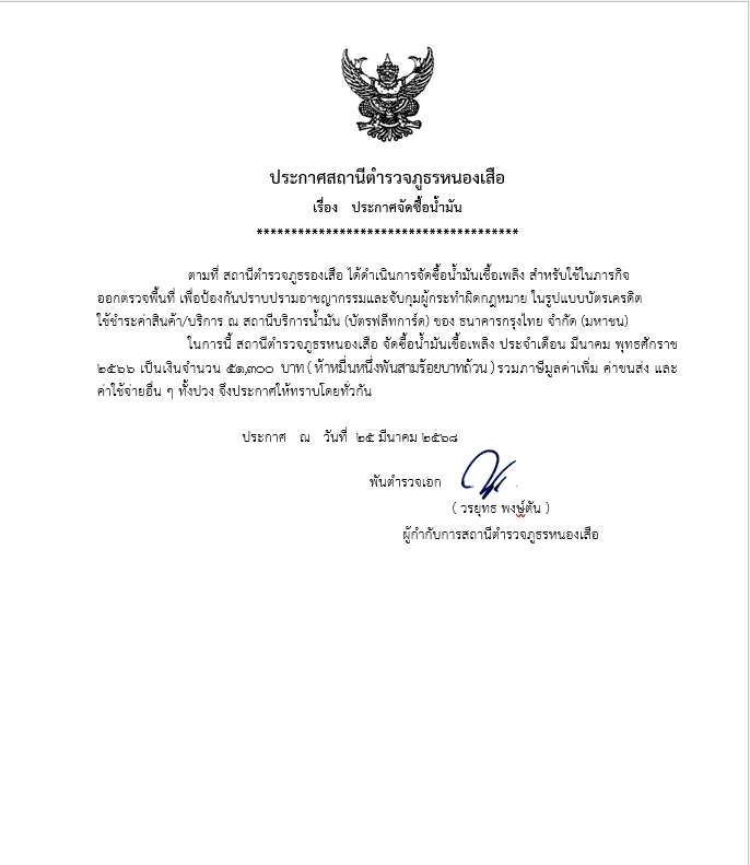 ประกาศ การจัดซื้อจัดจ้าง เดือน มกราคม 2568