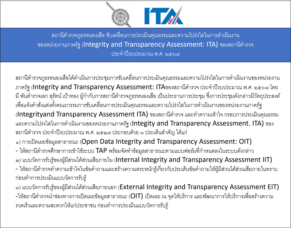 การประชาสัมพันธ์ขอมูลผลการดำเนินงานของหน่วยเรื่องการประเมิน ITA
