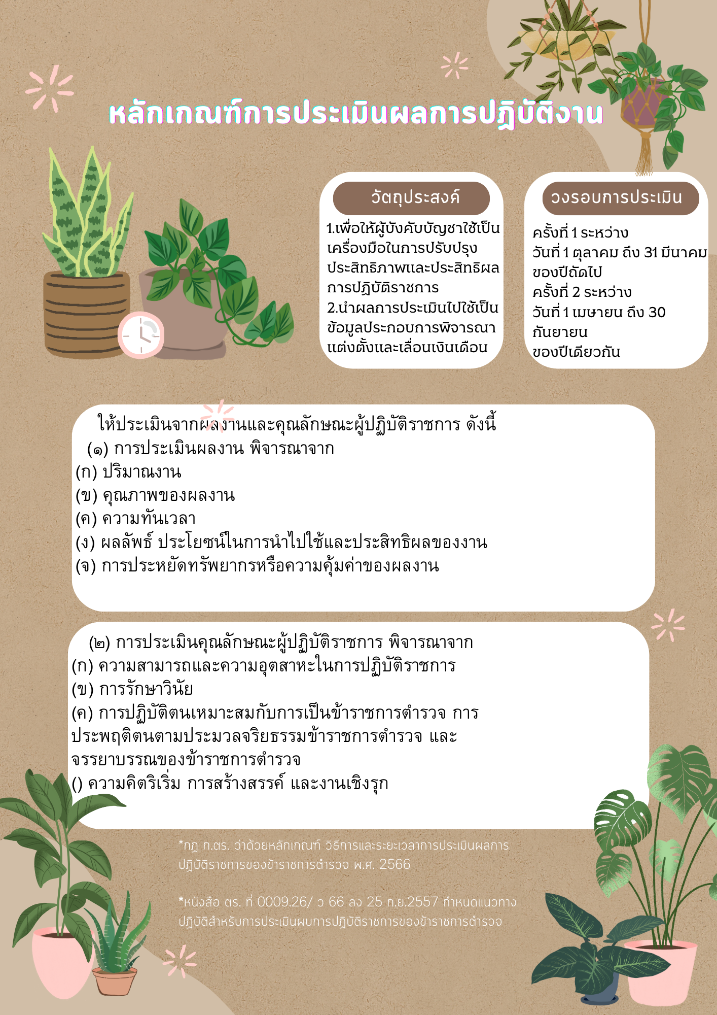 - กฎ ก.ตร. ว่าด้วยหลักเกณฑ์ วิธีการและระยะเวลาการประเมินผลการปฏิบัติราชการของข้าราชการตำรวจ พ.ศ.๒๕๖๖