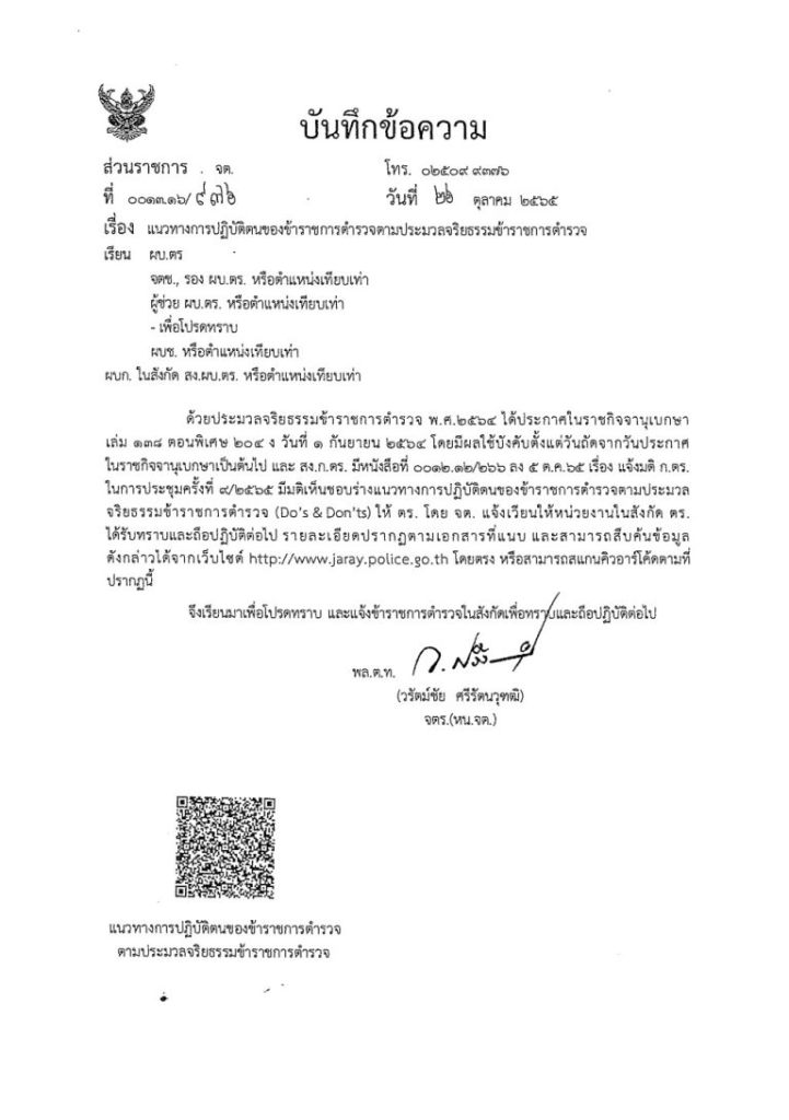 ดาวน์โหลดแนวทางการปฏิบัติตนของข้าราชการตำรวจ