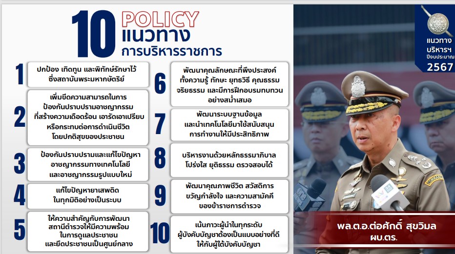 การปฏิบัติราชการตาม10 นโยบายหลัก ของ พล.ต.อ.ต่อศักดิ์ สุขวิมล ผบ.ตร.